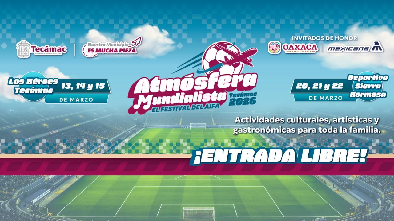 El Festival Atmósfera Mundialista 2026 representa una plataforma para que habitantes y visitantes conozcan todo lo que ofrece Tecámac y confirmen por qué nuestro municipio es mucha pieza. ¡Los esperamos!